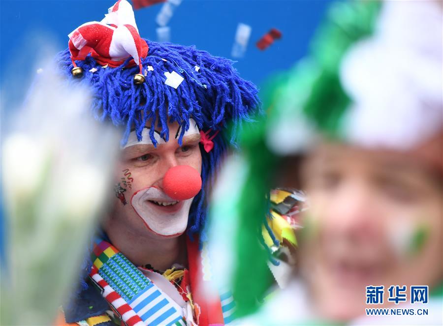 2月24日,在德國科隆,一名男子參加“玫瑰星期一”大游行。新華社記者 逯陽 攝