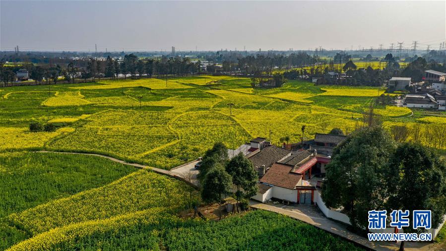 2月25日在四川省崇州市拍攝的油菜花田(無人機照片)。 新華社記者 王曦 攝