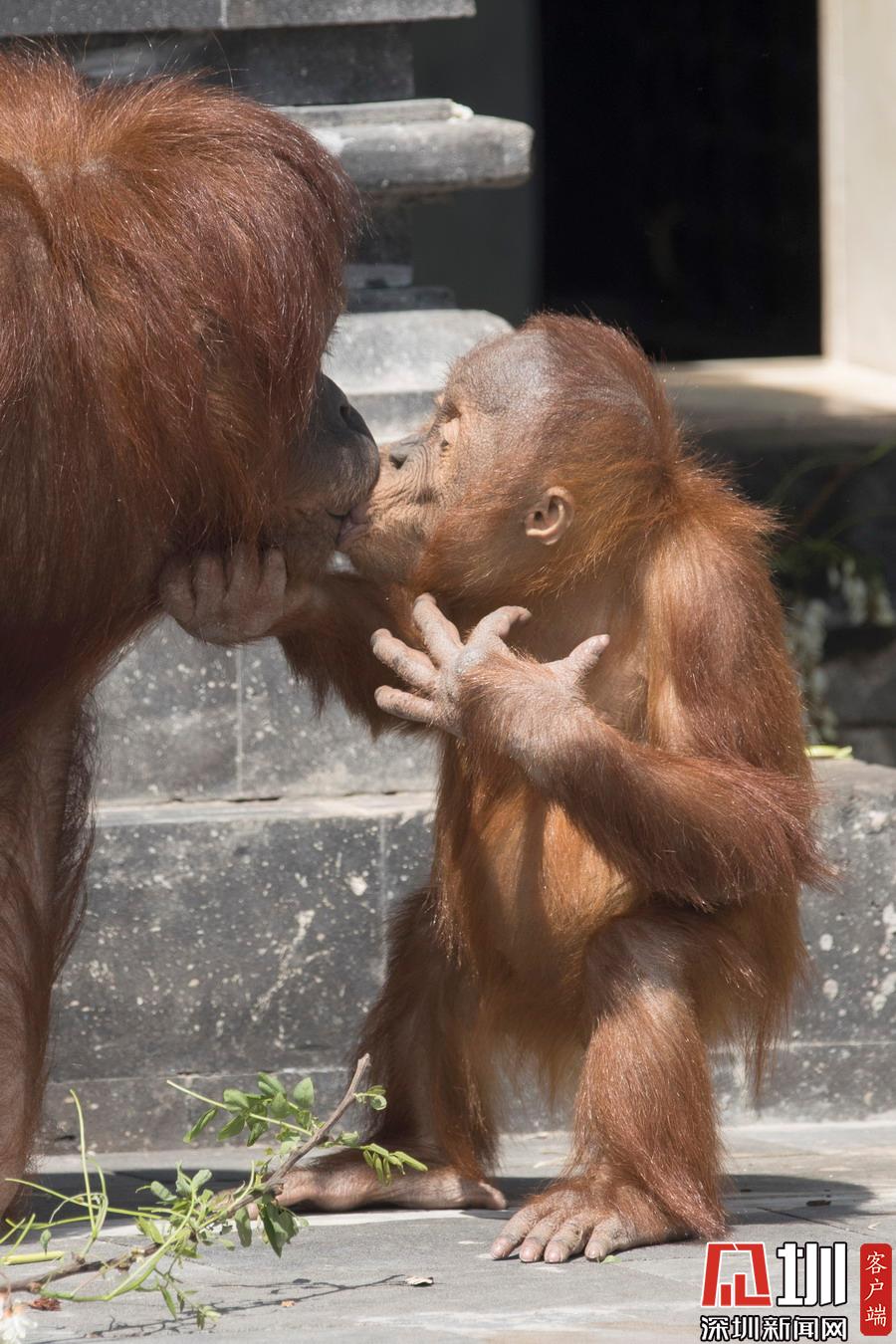 當(dāng)時(shí)三歲的 Berani正獨(dú)自在戶外玩耍,不一會(huì)它的媽媽 Sari就找來了,一把拖著娃從草地上回到家門口,然后立刻送上擁抱和親吻,原來猩媽媽是想孩子了呀!