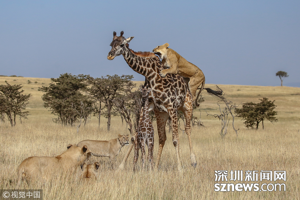 詹姆斯·納帕索解釋說:“這頭小鹿出生只有幾天時間,但對獅群來說,要捕獲它仍然是一場巨大的挑戰(zhàn),因為母長頸鹿竭力保護它的孩子,而成年長頸鹿的飛踹對獅子來說通常是致命的?!弊罱K,由于被獅子攻擊頸部,這位勇敢的母親退卻了,它最終失去了它的幼崽。