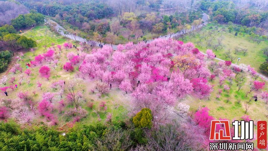 2020年2月26日,春暖花開(kāi),春意盎然,江蘇省揚(yáng)州市蜀岡西峰生態(tài)公園內(nèi)梅花競(jìng)相綻放,五顏六色的梅花樹(shù)為古城大地披上七彩春裝,美不勝收,吸引了市民和游客前來(lái)踏春賞景。