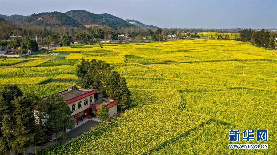 2月25日在四川省崇州市拍攝的油菜花田(無人機(jī)照片)。新華社記者王曦?cái)z