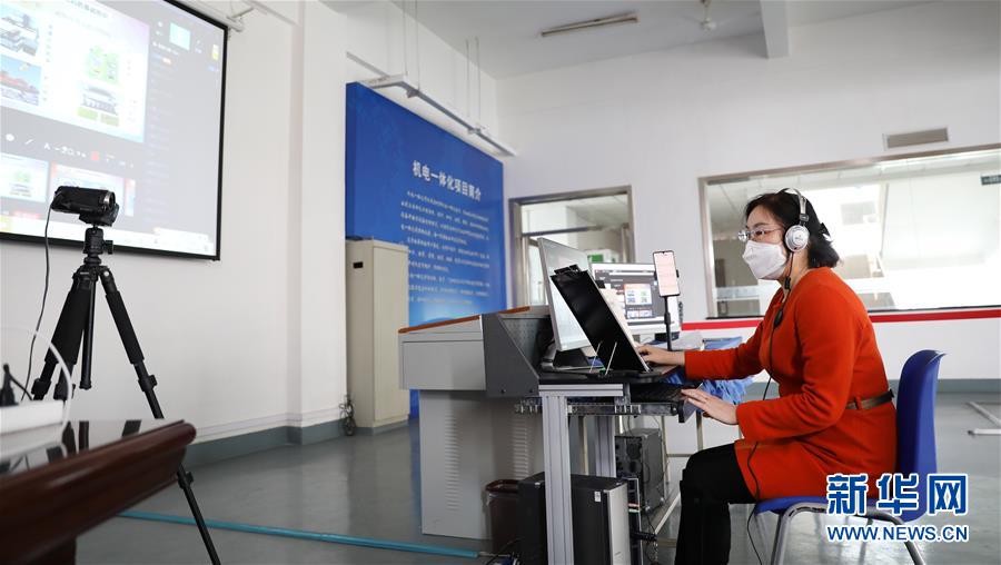 3月4日,職教城內(nèi)的鞍山市技師學(xué)院的王曉娜老師為學(xué)生進行機電一體化網(wǎng)絡(luò)授課。遼寧省鞍山市職教城內(nèi)的各類職業(yè)教育學(xué)校從3月2日恢復(fù)網(wǎng)絡(luò)授課以來,教師們設(shè)置了豐富多彩的課程,提高1萬余名學(xué)生線上學(xué)習(xí)的積極性。新華社記者 姚劍鋒 攝
