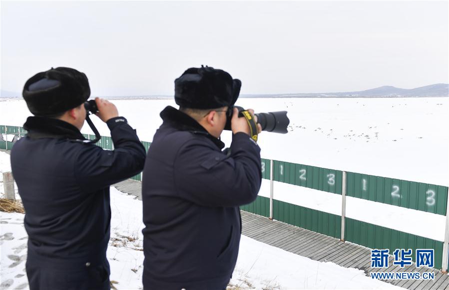 為保障候鳥(niǎo)在敬信濕地逗留期間的安全,琿春森林公安局基層民警奮戰(zhàn)在護(hù)鳥(niǎo)一線(xiàn),積極加大巡護(hù)力度,在風(fēng)雪天氣為候鳥(niǎo)投放糧食,嚴(yán)打獵捕候鳥(niǎo)違法犯罪,確保候鳥(niǎo)遷徙通道安全。新華社記者 許暢 攝