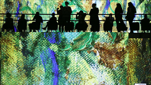 2月27日,在法國巴黎,人們在《從莫奈、雷諾阿到夏加爾:地中海之旅》光影藝術沉浸展的媒體預展上參觀?!稄哪?、雷諾阿到夏加爾:地中海之旅》光影藝術沉浸展將于2020年2月28日至2021年1月3日在法國巴黎舉行。展覽利用數碼投影技術為觀眾展示包括莫奈、雷諾阿、夏加爾等在內的20位藝術大師關于地中海題材的代表作,讓觀眾沉浸在從印象派到現(xiàn)代主義畫作的視聽享受中。新華社記者高靜攝