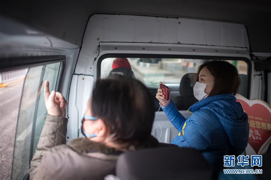 3月12日,黎婧(右)被小區(qū)工作人員接上車后,透過車窗拍攝熟悉的街道。 3月12日,插畫師黎婧和84位病友離開自己居住的武漢軟件工程職業(yè)學(xué)院康復(fù)驛站,回到自己家中。他們都是治愈出院的新冠病毒肺炎患者,已經(jīng)在武漢軟件工程職業(yè)學(xué)院康復(fù)驛站進(jìn)行了14天醫(yī)學(xué)觀察,達(dá)到醫(yī)學(xué)標(biāo)準(zhǔn),成功解除隔離。他們由專車運(yùn)送至所屬社區(qū)附近的集散點(diǎn)后,在社區(qū)工作人員的陪同下回家。 新華社記者 肖藝九 攝