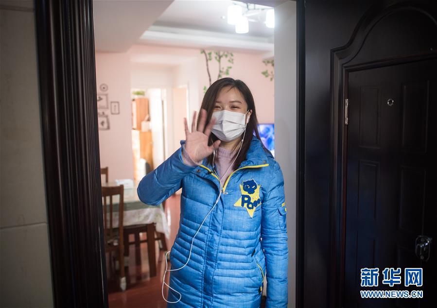 3月12日,黎婧到家后與小區(qū)網(wǎng)格員揮手告別。 3月12日,插畫師黎婧和84位病友離開自己居住的武漢軟件工程職業(yè)學(xué)院康復(fù)驛站,回到自己家中。他們都是治愈出院的新冠病毒肺炎患者,已經(jīng)在武漢軟件工程職業(yè)學(xué)院康復(fù)驛站進(jìn)行了14天醫(yī)學(xué)觀察,達(dá)到醫(yī)學(xué)標(biāo)準(zhǔn),成功解除隔離。他們由專車運(yùn)送至所屬社區(qū)附近的集散點(diǎn)后,在社區(qū)工作人員的陪同下回家。 新華社記者 肖藝九 攝