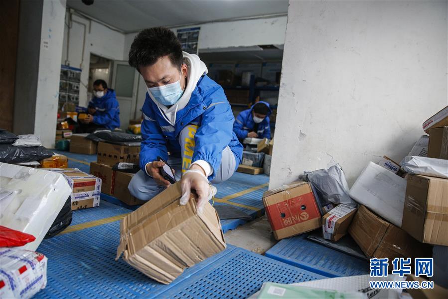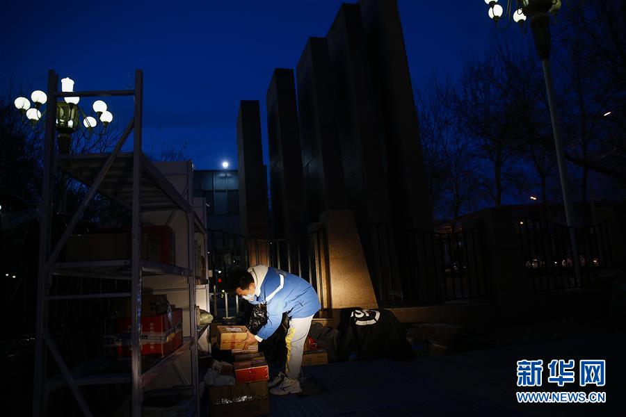3月12日早晨,李杰在運送快遞的路上。新華社記者張玉薇攝