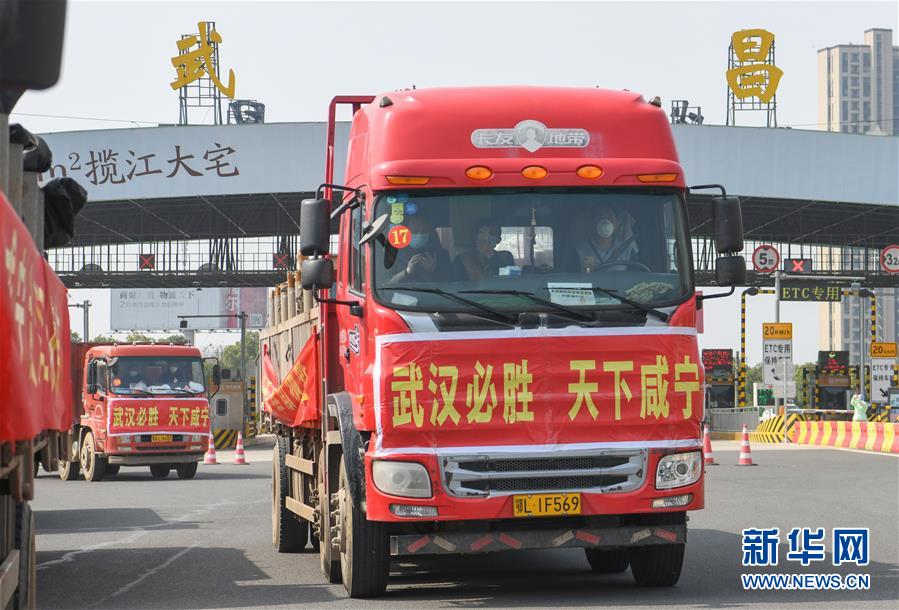 3月13日,滿載活魚的水產(chǎn)運輸車開往武漢市區(qū)。當日,首批100噸調(diào)配自湖北省咸寧市的活魚運抵武漢市硚口區(qū)11個街道下轄社區(qū)。咸寧是魚米之鄉(xiāng),水產(chǎn)資源豐富。此次戰(zhàn)疫咸寧得到了全國人民的支持,疫情得到良好控制。咸寧送魚,希望傳遞愛心,支持武漢早日戰(zhàn)勝疫情。新華社記者程敏攝