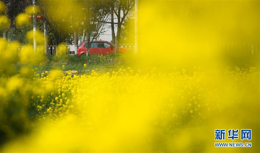 3月14日,在武漢市西北部市郊,一輛汽車(chē)從油菜花田前駛過(guò)。隨著氣溫升高,春意在武漢的枝頭上萌動(dòng),花朵漸次開(kāi)放。新華社記者肖藝九攝