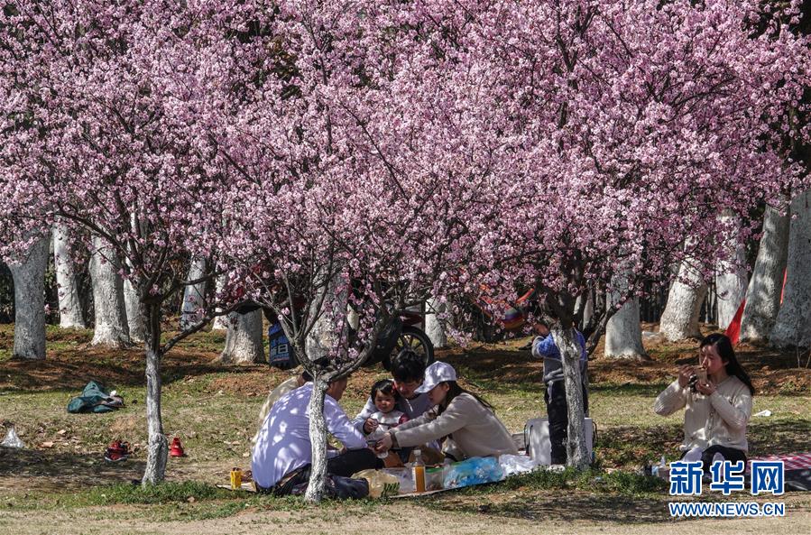 3月15日,在南京東郊體育公園,市民在櫻花樹下休息賞櫻。 當(dāng)日,南京風(fēng)和日麗,市民們來(lái)到東郊體育公園,踏青春游。 新華社記者 楊磊 攝