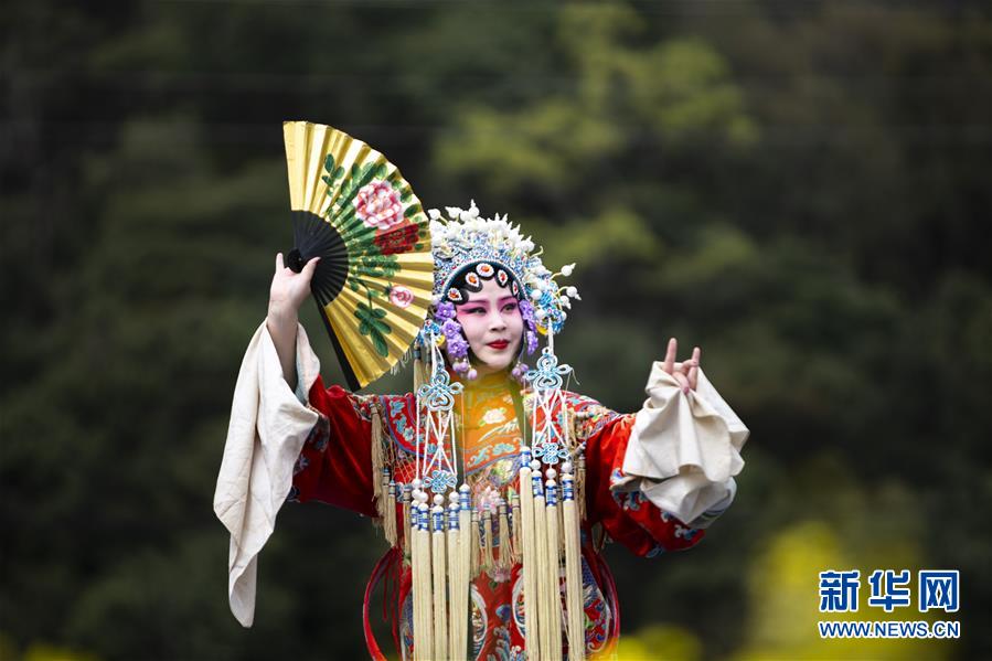 3月16日,演員在李坑村的“花田音樂(lè)會(huì)”上表演戲曲。 新華社記者 張浩波 攝