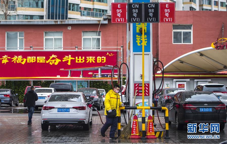 3月17日,車輛在吉林省長春市一處加油站加油。 新華社記者 許暢 攝