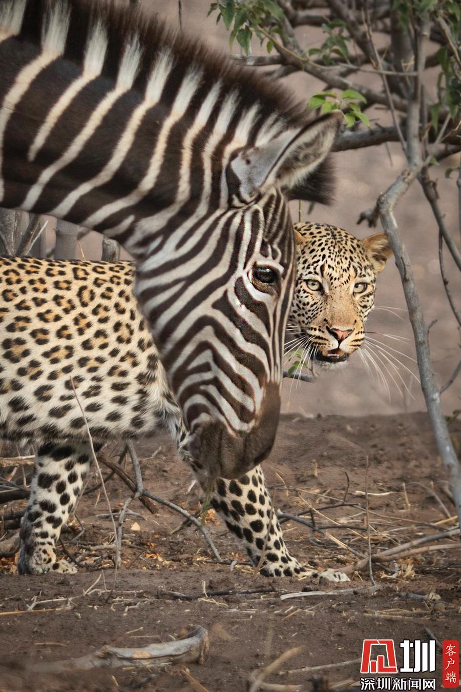攝影師抓拍神奇畫(huà)面:獵豹捕食斑馬失敗 敵人秒變朋友?