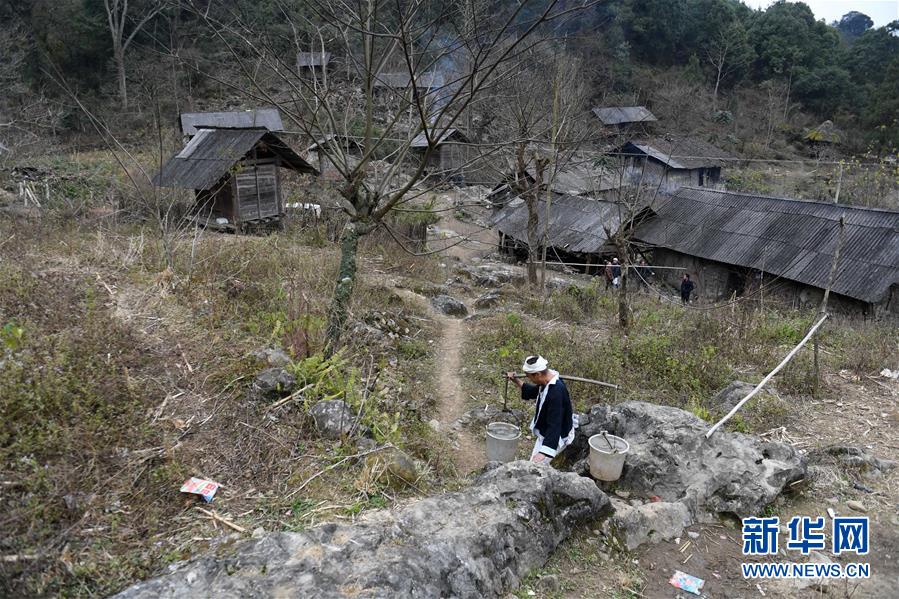 廣西南丹縣里湖瑤族鄉(xiāng),村民從水柜挑水回家(2018年1月12日攝)。廣西有近一半貧困人口生活在石漠化地區(qū),涉及數(shù)十個(gè)縣區(qū)。這里也是廣西飲水保障程度最低的地區(qū),解決貧困人口飲水問題是廣西脫貧攻堅(jiān)戰(zhàn)“硬仗中的硬仗”。“十三五”以來,廣西加快實(shí)施農(nóng)村飲水安全鞏固提升工程。因地制宜,采取新建、擴(kuò)建及管網(wǎng)延伸等多種措施,補(bǔ)齊貧困地區(qū)水利薄弱短板,進(jìn)一步提升石漠化地區(qū)群眾飲水安全保障水平,助推脫貧攻堅(jiān)。新華社記者周華攝