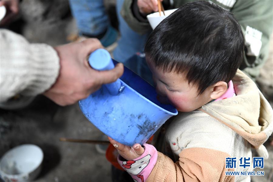 廣西南丹縣里湖瑤族鄉(xiāng),村民給孩子喂水(2018年1月12日攝)。廣西有近一半貧困人口生活在石漠化地區(qū),涉及數(shù)十個縣區(qū)。這里也是廣西飲水保障程度最低的地區(qū),解決貧困人口飲水問題是廣西脫貧攻堅戰(zhàn)“硬仗中的硬仗”?!笆濉币詠?,廣西加快實施農(nóng)村飲水安全鞏固提升工程。因地制宜,采取新建、擴建及管網(wǎng)延伸等多種措施,補齊貧困地區(qū)水利薄弱短板,進一步提升石漠化地區(qū)群眾飲水安全保障水平,助推脫貧攻堅。新華社記者周華攝
