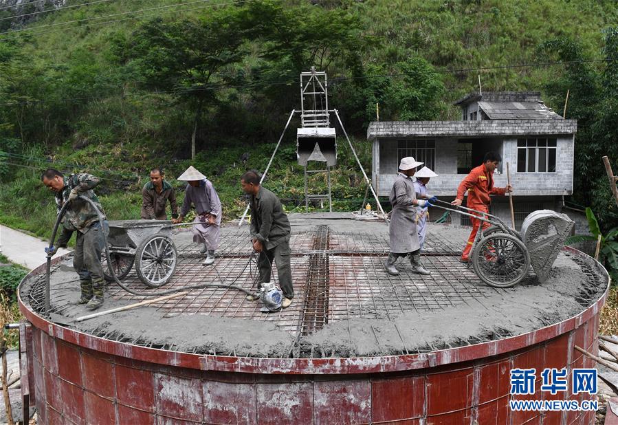 在廣西都安瑤族自治縣龍灣鄉(xiāng)龍煥村大朋屯,當(dāng)?shù)厝罕娫谛藿ㄋ瘢?019年7月23日攝)。廣西有近一半貧困人口生活在石漠化地區(qū),涉及數(shù)十個(gè)縣區(qū)。這里也是廣西飲水保障程度最低的地區(qū),解決貧困人口飲水問題是廣西脫貧攻堅(jiān)戰(zhàn)“硬仗中的硬仗”?!笆濉币詠恚瑥V西加快實(shí)施農(nóng)村飲水安全鞏固提升工程。因地制宜,采取新建、擴(kuò)建及管網(wǎng)延伸等多種措施,補(bǔ)齊貧困地區(qū)水利薄弱短板,進(jìn)一步提升石漠化地區(qū)群眾飲水安全保障水平,助推脫貧攻堅(jiān)。新華社記者陸波岸攝