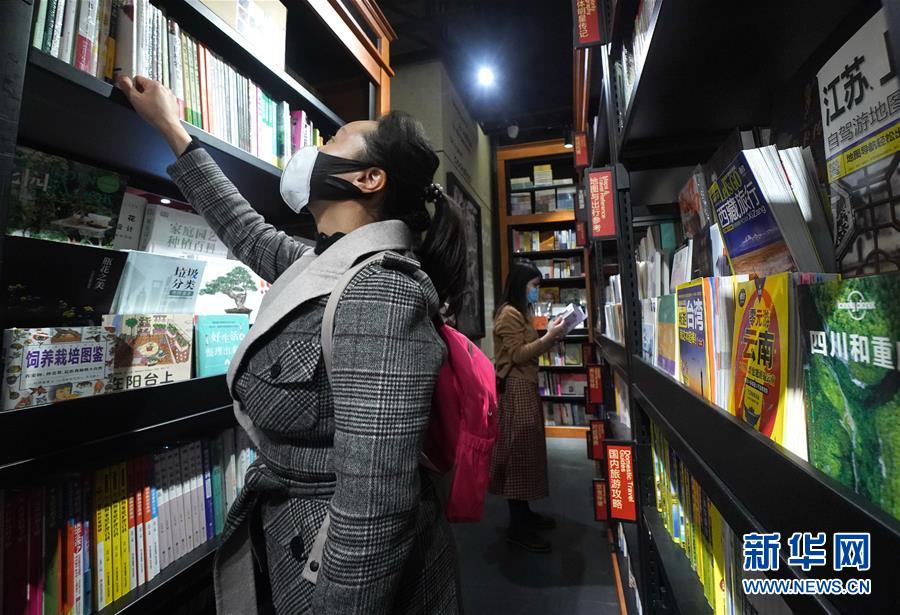 3月22日,顧客在上海市中山北路上的一家書店內(nèi)選購圖書。近期,上海市的一些實體書店陸續(xù)恢復開放。為做好疫情防控工作,目前進入書店需要測量體溫,書店也縮短了運營時間。新華社記者陳飛攝