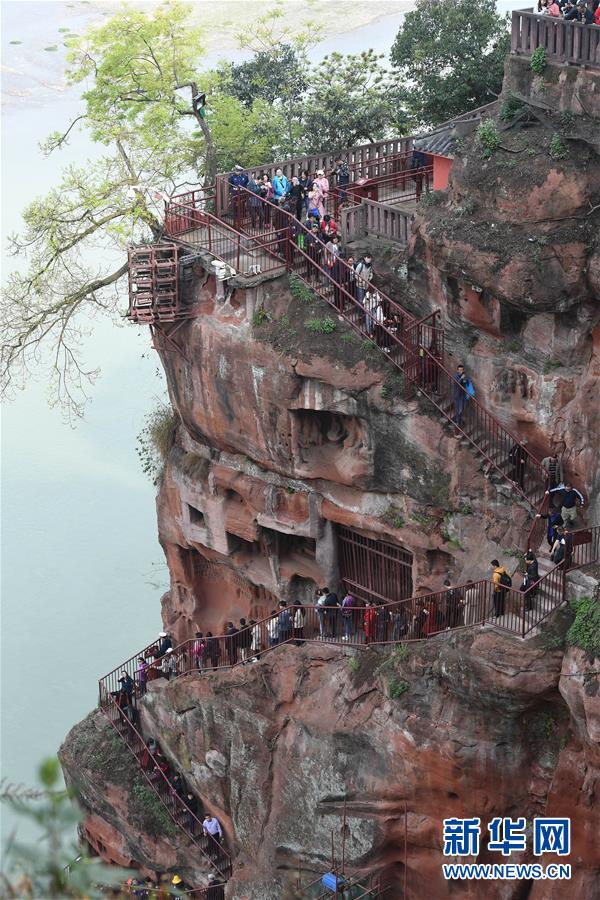 4月1日,樂山大佛景區(qū)的九曲棧道重新對游客開放。新華社記者江宏景攝