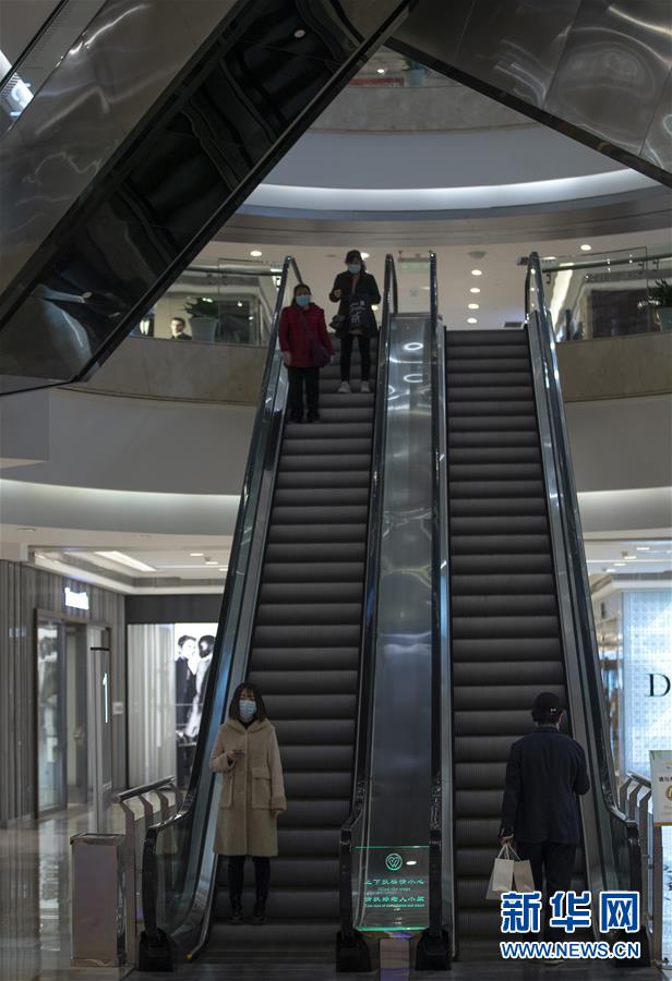 3月30日,在武商國(guó)際廣場(chǎng),顧客乘坐滾梯。當(dāng)日,武漢市多家商場(chǎng)開門迎客。新華社記者費(fèi)茂華攝