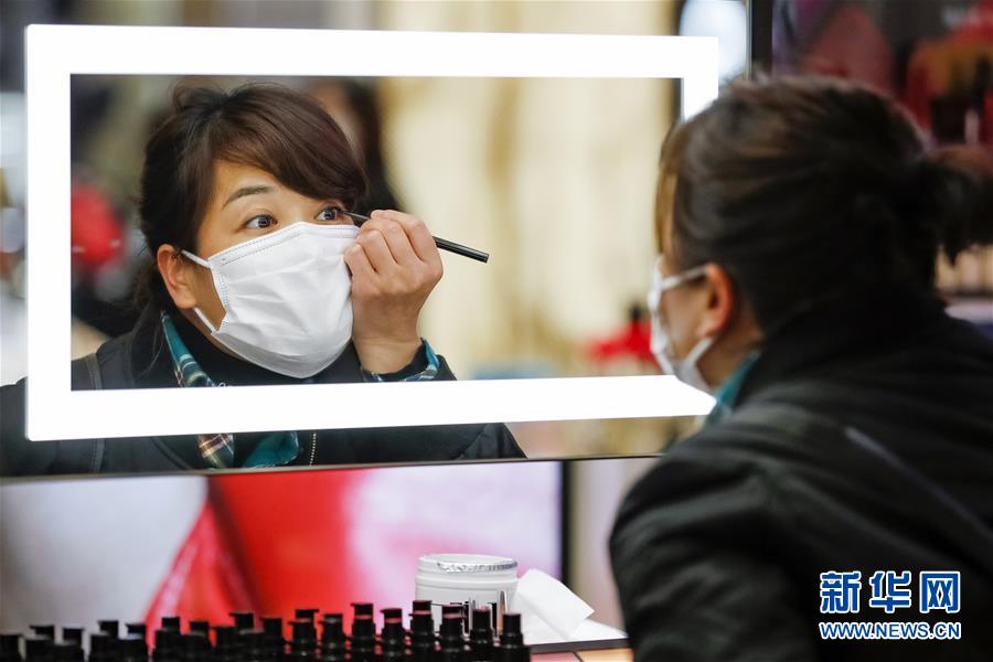 3月30日,在武漢市武商廣場(chǎng),消費(fèi)者在試用眉筆。當(dāng)日,武漢市多家商場(chǎng)開門迎客。新華社記者沈伯韓攝