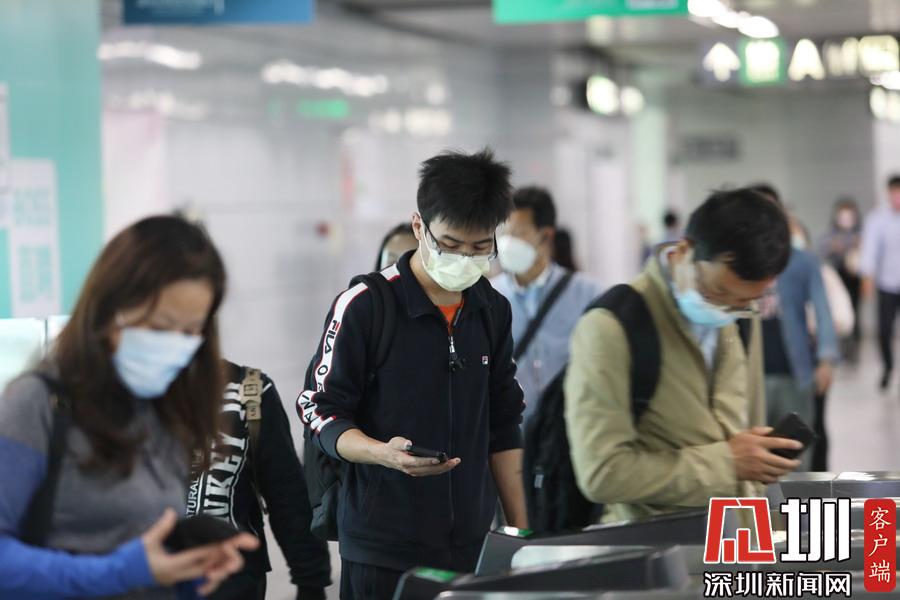 3月18日晚高峰時段,在深圳地鐵車公廟站,乘客掃描二維碼進(jìn)行實(shí)名登記。新華社記者梁旭攝