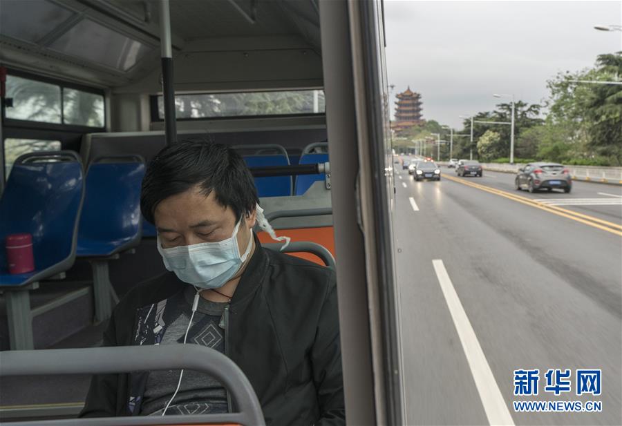 3月25日,61路公交車駛過黃鶴樓后進(jìn)入武漢長江大橋。新華社記者費(fèi)茂華攝
