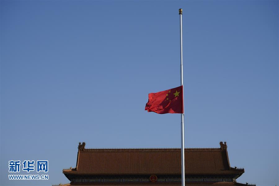 天安門廣場下半旗志哀