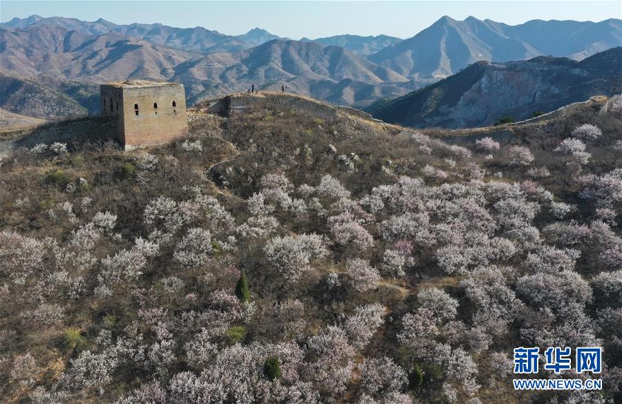 近日,地處燕山山脈的河北省遷安市大崔莊鎮(zhèn)長城景區(qū)山杏花競相開放,呈現(xiàn)爛漫山花映長城的景觀。