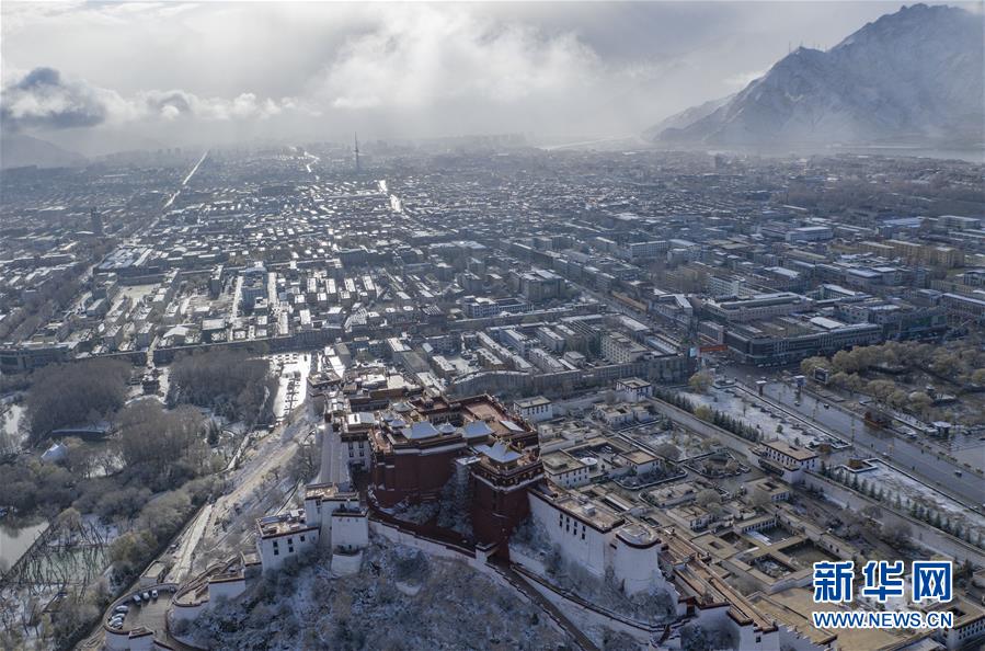 當(dāng)日,西藏拉薩迎來(lái)降雪,高原古城銀裝素裹,美如畫(huà)卷。新華社記者普布扎西攝