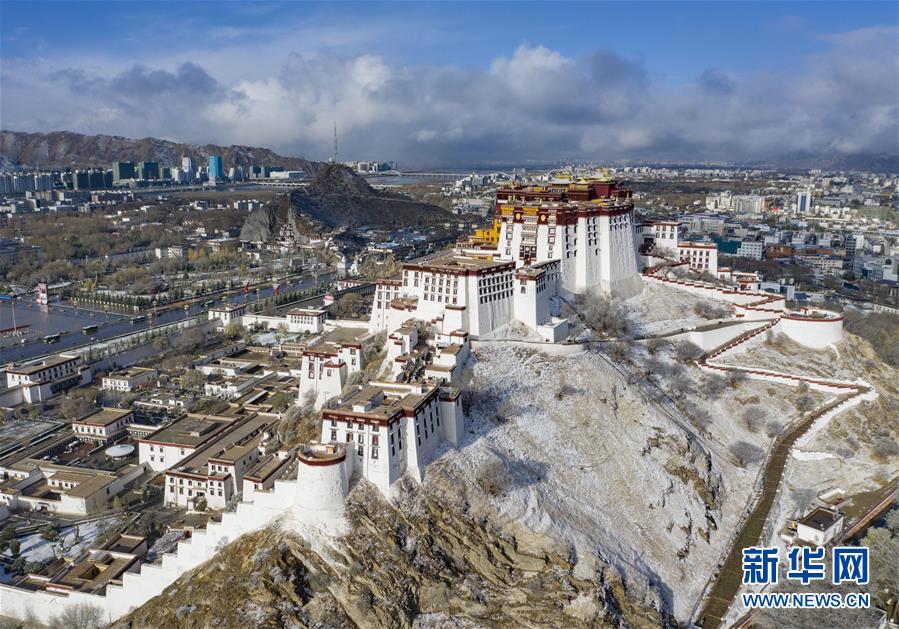 4月5日拍攝的布達(dá)拉宮雪景(無人機照片)。新華社記者普布扎西攝