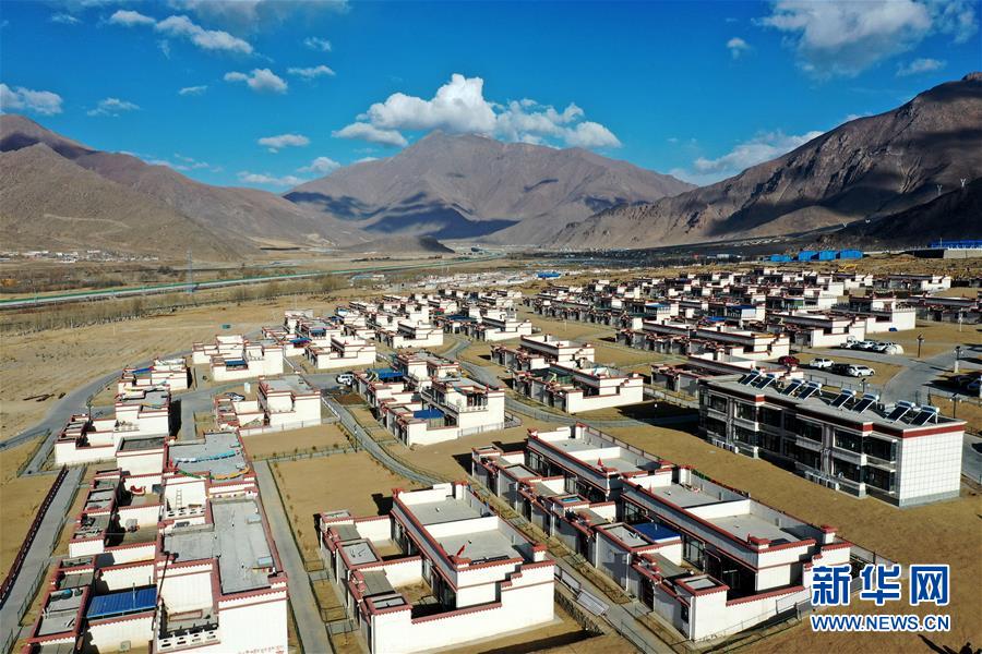 拉薩市堆龍德慶區(qū)古榮鄉(xiāng)榮瑪高海拔生態(tài)搬遷點(diǎn)一角(4月2日攝,無(wú)人機(jī)照片)。新華社記者 詹彥 攝