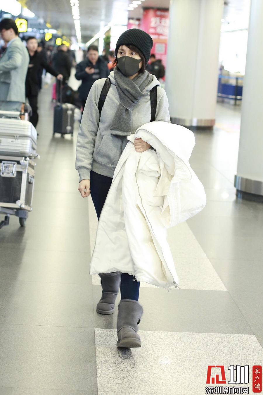 2019年1月5日,北京,袁泉現(xiàn)身機(jī)場。