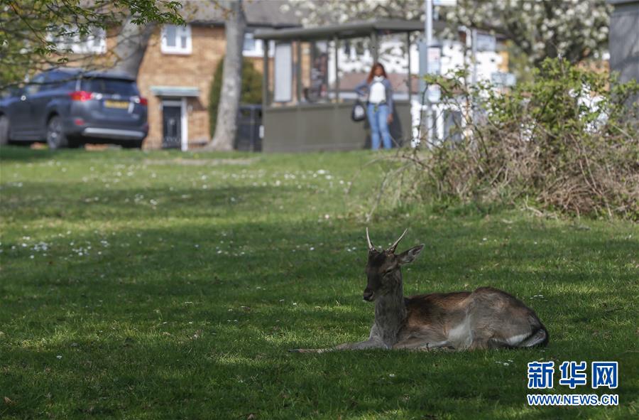 4月8日,在英國(guó)倫敦東部一個(gè)居民區(qū),附近公園里的鹿在草坪上休息。隨著新冠疫情在英國(guó)的擴(kuò)散,政府要求人們減少不必要的外出。倫敦東部一個(gè)居民區(qū)附近公園里原來(lái)散養(yǎng)的鹿紛紛從公園走出來(lái),或吃草或接受附近居民的喂食,成為特殊時(shí)期居民區(qū)里的新“客人”。新華社記者韓巖攝