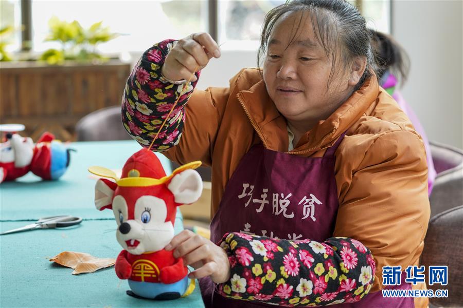 4月8日,在重慶石柱中益鄉(xiāng)巾幗扶貧工坊,一名當(dāng)?shù)貗D女在縫制文創(chuàng)產(chǎn)品。近年來,重慶市石柱土家族自治縣中益鄉(xiāng)在重慶市婦聯(lián)的幫助下,以當(dāng)?shù)胤沁z傳統(tǒng)技藝作為結(jié)合點(diǎn),把扶貧與扶志、扶智相結(jié)合,通過引進(jìn)外來文創(chuàng)企業(yè)對留守婦女、貧困及殘疾人群進(jìn)行刺繡培訓(xùn),設(shè)立巾幗扶貧工坊等多種形式,幫助當(dāng)?shù)卮迕駥?shí)現(xiàn)就業(yè)增收。據(jù)介紹,巾幗扶貧工坊運(yùn)行以來,為當(dāng)?shù)仃懤m(xù)開發(fā)出土家族布老虎、手提袋、餐墊繡邊、創(chuàng)意相框等一系列文創(chuàng)產(chǎn)品,幫助參加巾幗扶貧工坊的留守婦女和貧困村民實(shí)現(xiàn)月均增收近千元。新華社記者劉潺攝