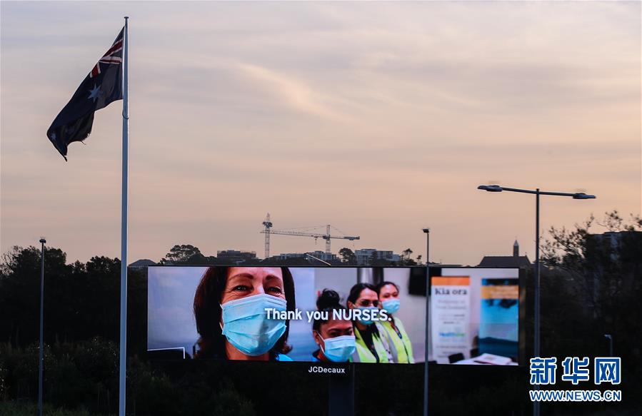 4月15日,在澳大利亞悉尼,戶外廣告牌上打出“感謝護士”的字樣,感謝在疫情期間工作的人們。新華社記者白雪飛攝