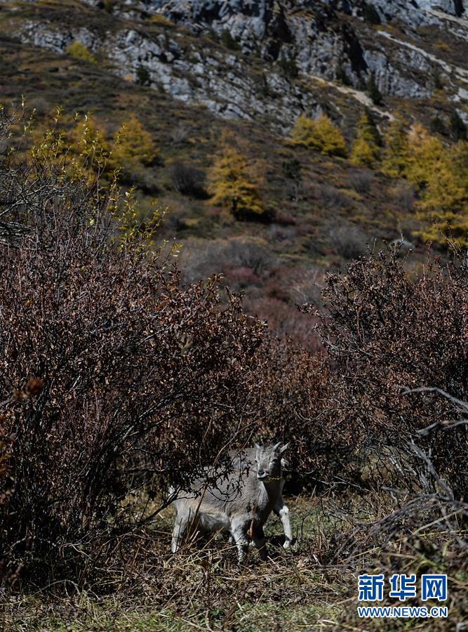 這是在四川亞丁國家級(jí)自然保護(hù)區(qū)拍攝的野生巖羊(2019年10月20日攝)。新華社記者唐文豪攝