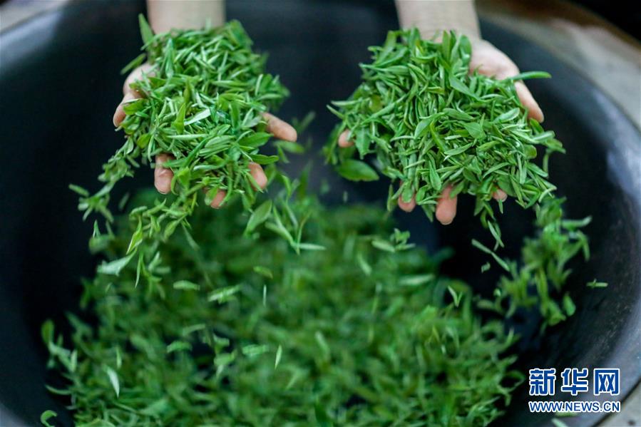4月25日,工作人員在“扶貧茶園”內(nèi)制作綠茶。谷雨過(guò)后,在貴州省黔東南苗族侗族自治州丹寨縣“扶貧茶園”,茶農(nóng)搶抓農(nóng)時(shí)趕制春茶。丹寨縣創(chuàng)新產(chǎn)業(yè)扶貧模式,鼓勵(lì)社會(huì)公眾線上認(rèn)領(lǐng)茶園,再由茶園聘請(qǐng)當(dāng)?shù)刎毨魟?wù)工,為貧困戶創(chuàng)造茶園管理、采茶、制茶等就業(yè)機(jī)會(huì),幫助貧困戶增收。今年以來(lái),“扶貧茶園”已接受線上預(yù)訂600余畝,給當(dāng)?shù)?00余名村民提供了就業(yè)機(jī)會(huì)。新華社記者歐東衢攝