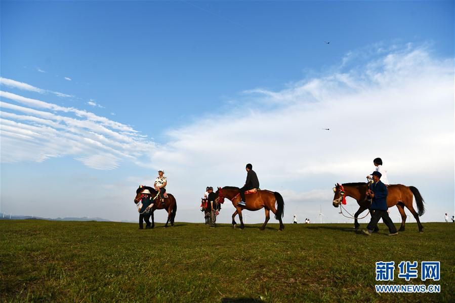 5月3日,游客在貴州省龍里大草原景區(qū)騎馬觀光。“五一”小長假期間,貴州省黔南布依族苗族自治州龍里大草原景區(qū)天氣怡人,高山草原風(fēng)光吸引游客前來游玩。新華社記者 楊文斌 攝