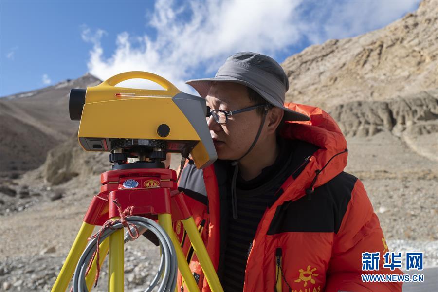 國測一大隊隊員楊明在西藏定日縣曲當(dāng)鄉(xiāng)境內(nèi)進(jìn)行水準(zhǔn)測量(5月4日攝)。水準(zhǔn)測量是一種利用提供水平視線的儀器(如水準(zhǔn)儀、水準(zhǔn)標(biāo)尺),測定地面不同點之間的高差,并以此推算高度的一種方法,是經(jīng)典大地測量的重要技術(shù)之一。在目前正在進(jìn)行的2020珠峰高程測量中,部分國測一大隊隊員承擔(dān)了水準(zhǔn)測量的任務(wù)。新華社記者普布扎西攝