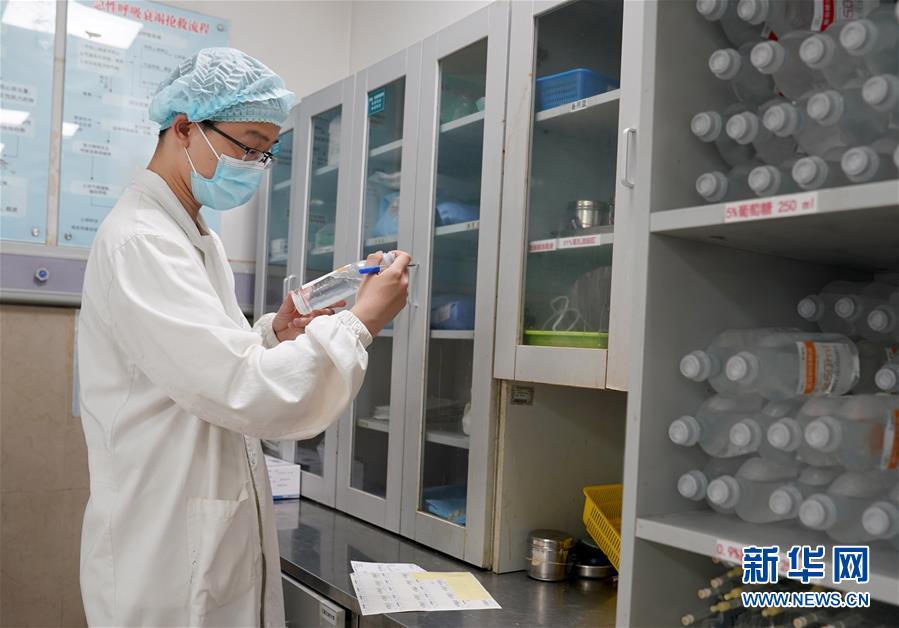 5月10日,在上海市普陀區(qū)中心醫(yī)院急診室,護(hù)士蔡杰君在準(zhǔn)備藥品。他曾在浦東國際機(jī)場“外防輸入”抗疫一線堅守30天。新華社記者劉穎攝