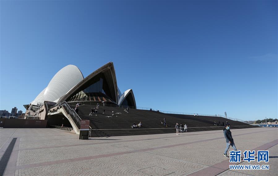 5月10日,在澳大利亞悉尼歌劇院前,少量市民出行游覽。新華社記者白雪飛攝