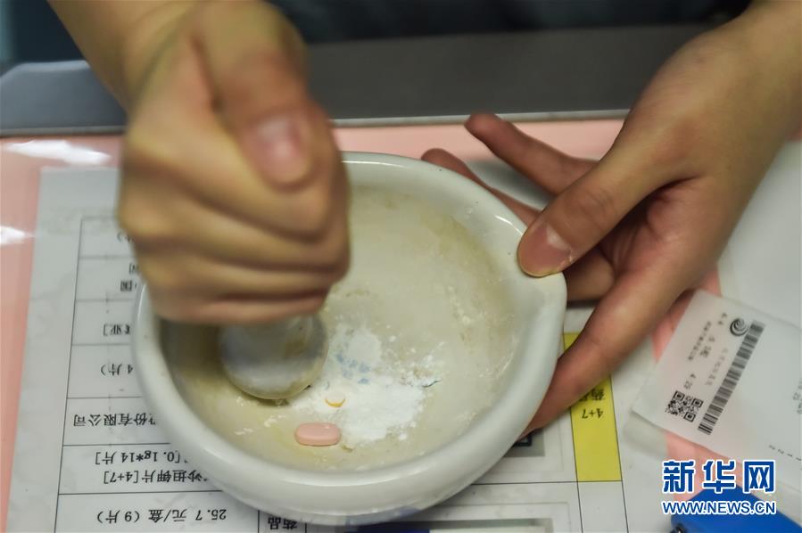5月11日,在北京地壇醫(yī)院感染二科護(hù)士站,一名護(hù)士為不方便服藥的病人研磨藥片。北京地壇醫(yī)院是北京市收治新冠肺炎患者的定點醫(yī)院之一,醫(yī)院的醫(yī)護(hù)人員一直奮戰(zhàn)在抗擊疫情的一線。在國際護(hù)士節(jié)前夕,記者前往北京地壇醫(yī)院,記錄下抗疫一線護(hù)士的日常工作狀態(tài)。新華社記者彭子洋攝