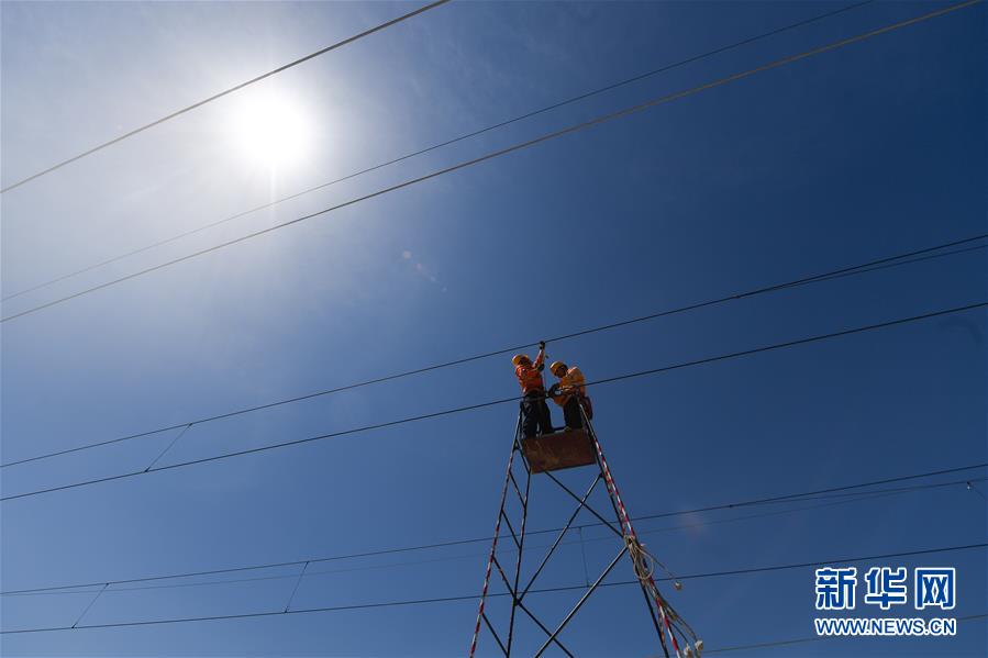 5月12日,中國鐵路上海局集團公司上海高鐵維修段的技術人員在商合杭高鐵浙江湖州段調(diào)整接觸網(wǎng)導線。近日,商合杭高鐵合肥至湖州段聯(lián)調(diào)聯(lián)試正有條不紊進行中。中國鐵路上海局集團公司上海高鐵維修段抽調(diào)49名精兵強將,持續(xù)對管轄范圍內(nèi)的高鐵線路、信號、接觸網(wǎng)線進行調(diào)試,為下一階段打下基礎。據(jù)了解,商合杭高鐵合湖段聯(lián)調(diào)聯(lián)試之后將轉(zhuǎn)入運行試驗階段,驗收合格并通過安全評估后,力爭6月底具備開通運營條件。新華社記者黃宗治攝