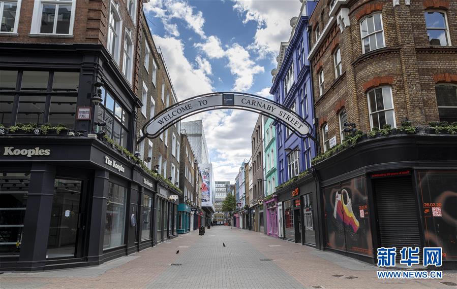 5月12日,英國倫敦主要商業(yè)街之一的卡納比街上的店鋪全部關閉。新華社記者韓巖攝