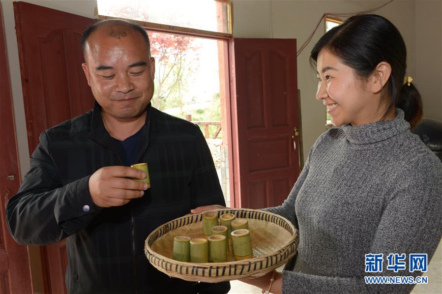 5月14日,在貴州省畢節(jié)市百里杜鵑管理區(qū)黃泥鄉(xiāng)龍?zhí)链逡患揖谱鞣?,村民在品嘗剛出的蒸餾酒。貴州省畢節(jié)市百里杜鵑管理區(qū)黃泥鄉(xiāng)龍?zhí)链宓凝執(zhí)凉啪?,因獨特的古法釀酒技術,口感獨特而遠近聞名。全村有釀酒戶142戶,年產(chǎn)量達45萬多公斤,龍?zhí)凉啪七h銷重慶、廣東、浙江等地,龍?zhí)凉啪埔殉蔀辇執(zhí)寥嗽鍪盏闹匾獊碓?。新華社記者楊楹攝