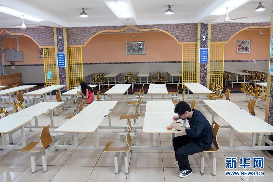 5月15日,在西南大學的一個學生食堂內,學生按照要求一人一桌吃午餐。當日,重慶西南大學迎來疫情以來首批返校大學生。據介紹,按照疫情防控的需要,重慶市高校2020年春季學期從5月11日起按照“一校一策”原則,實行錯峰錯時分批次有序開學復課。新華社記者劉潺攝