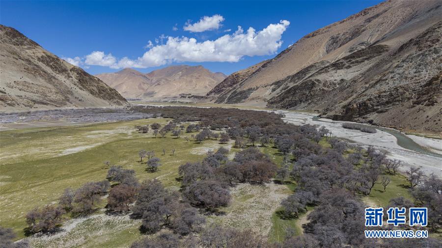 珠穆朗瑪峰國家級自然保護區(qū)內(nèi)的沙棘林(5月16日攝,無人機照片)。新華社記者孫非攝