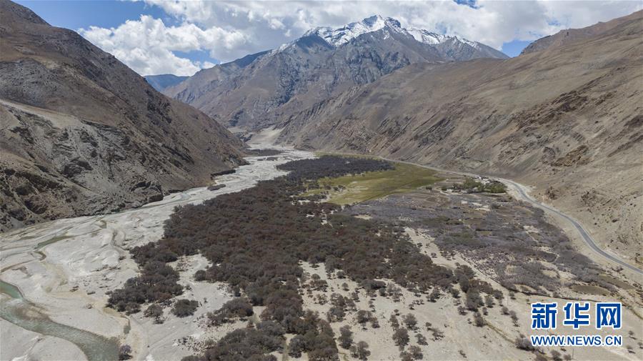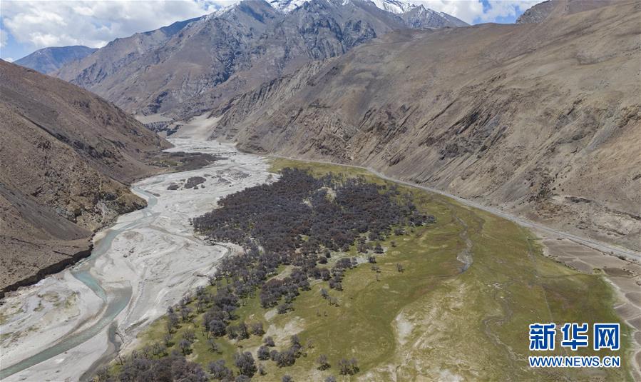 珠穆朗瑪峰國家級自然保護區(qū)內(nèi)的沙棘林和濕地(5月16日攝,無人機照片)。新華社記者普布扎西攝