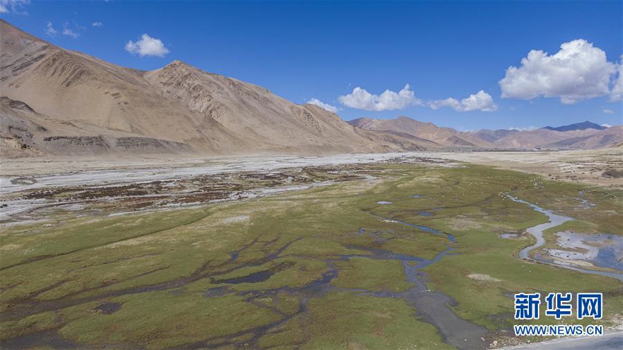 珠穆朗瑪峰國家級自然保護區(qū)里的濕地(5月16日攝,無人機照片)。新華社記者晉美多吉攝